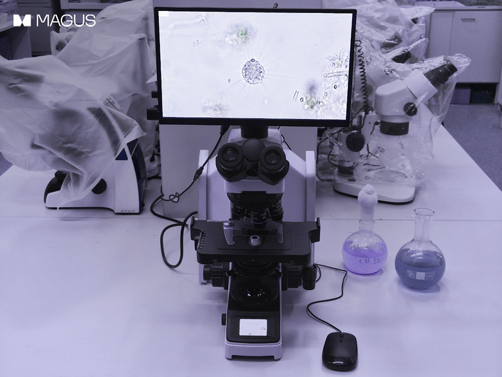 A MAGUS Bio 270T biológiai mikroszkópot, a MAGUS CHD50 digitális kamerát és a MAGUS MCD40 monitort egysejtű és koloniális eukarióta élőlények, valamint mikroszkopikus és közel mikroszkopikus méretű vízi állatok megfigyelésére és bemutatására használták a hallgatók számára.